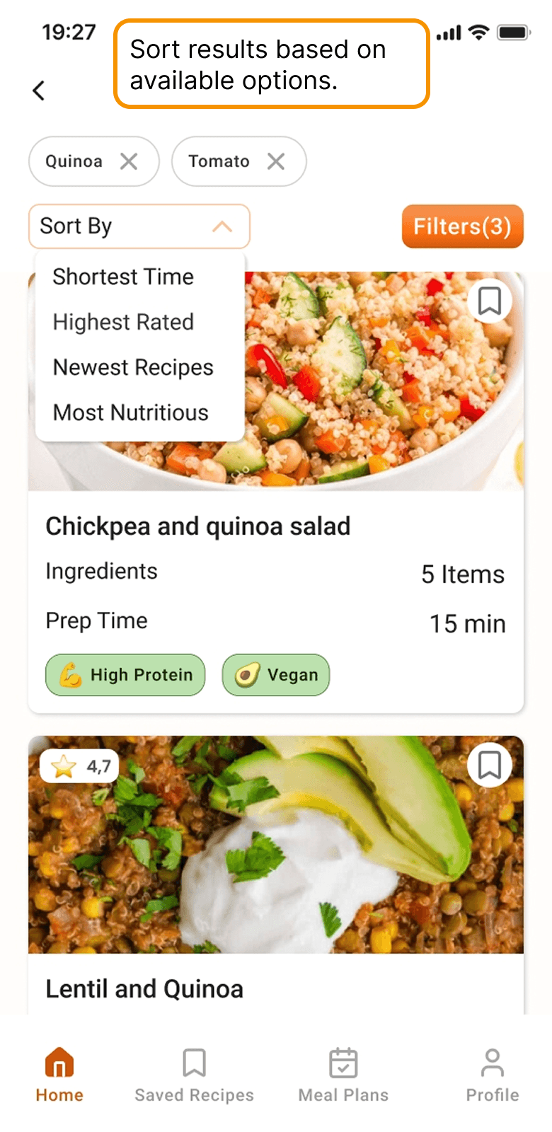 To help users decide faster, I designed recipe cards that show the most important info at a glance, reducing the need to open multiple recipes.